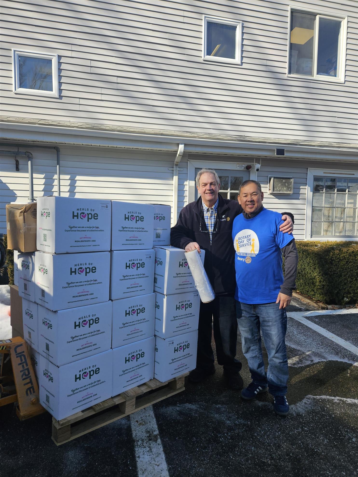 The Rotary Club of Weston and Wayland returned home with 35 boxes of meals — each box containing 28 bags, with 4 meals per bag — totaling 3,920 meals that will be distributed right here in our local area to help address food insecurity in our own communities.
